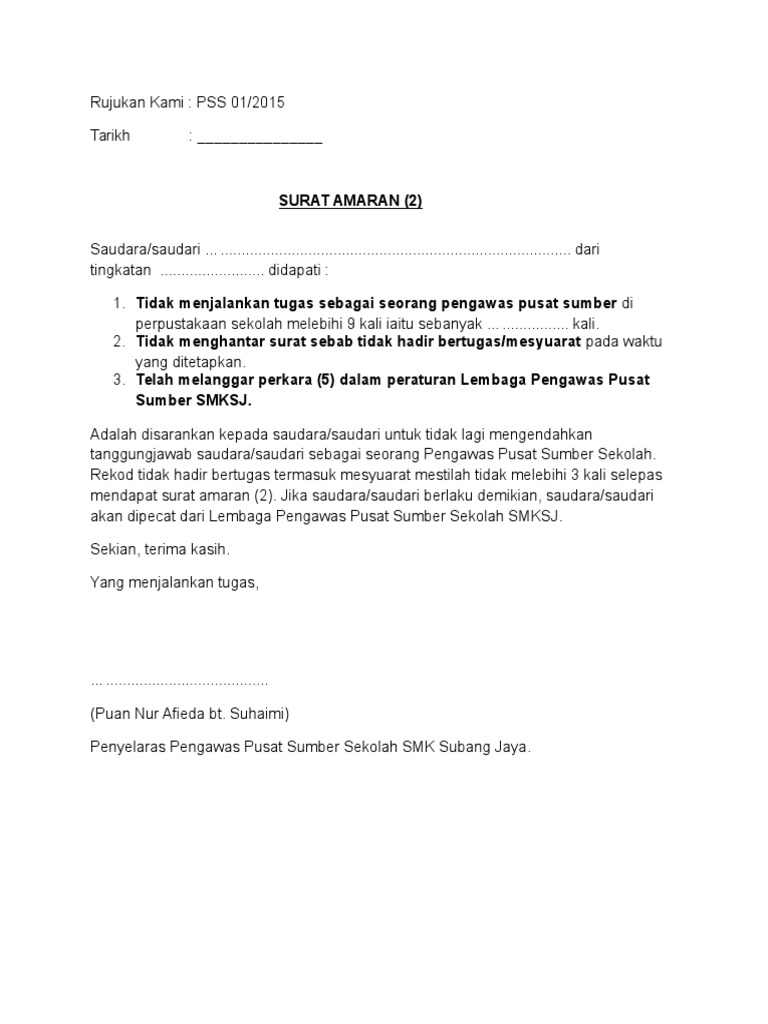 Surat arahan hadir bertugas dengan serta merta. Nama dan alamat staf tuanpuan arahan hadir bertugas dengan serta merta. Surat amaran untuk pekerja by fizz zan.